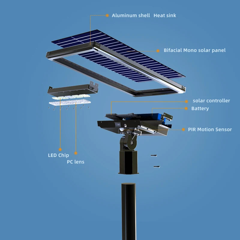 Public Lighting Outdoor Solar Integrated Double Glazed LED Street Light 80W100W IP65 Outdoor Solar Integrated Die-Cast Aluminum