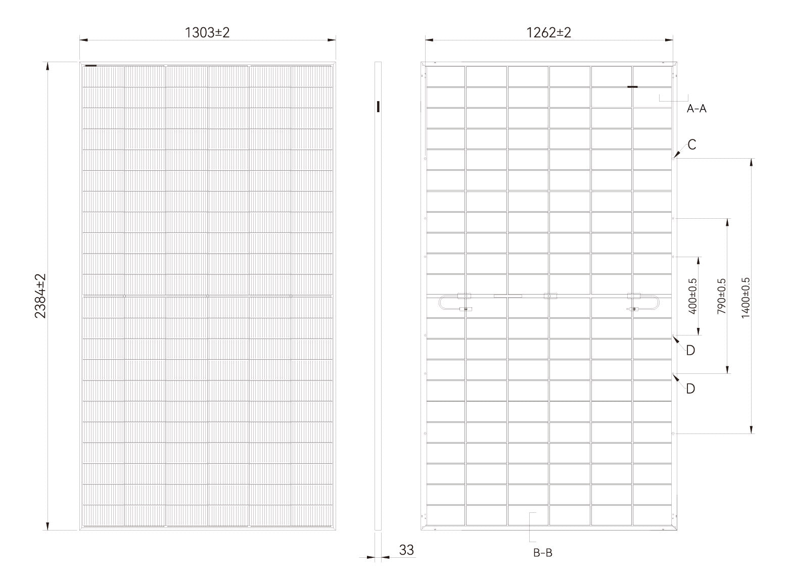 - Module Dimensions: 2384mm × 1303mm × 33mm