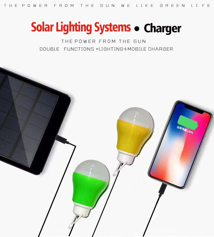 3 LED Solar Light Bulb with Mobile Charger Camping Hanging Lamp Extension Line for Outdoor Garden Corridor Home Decoration