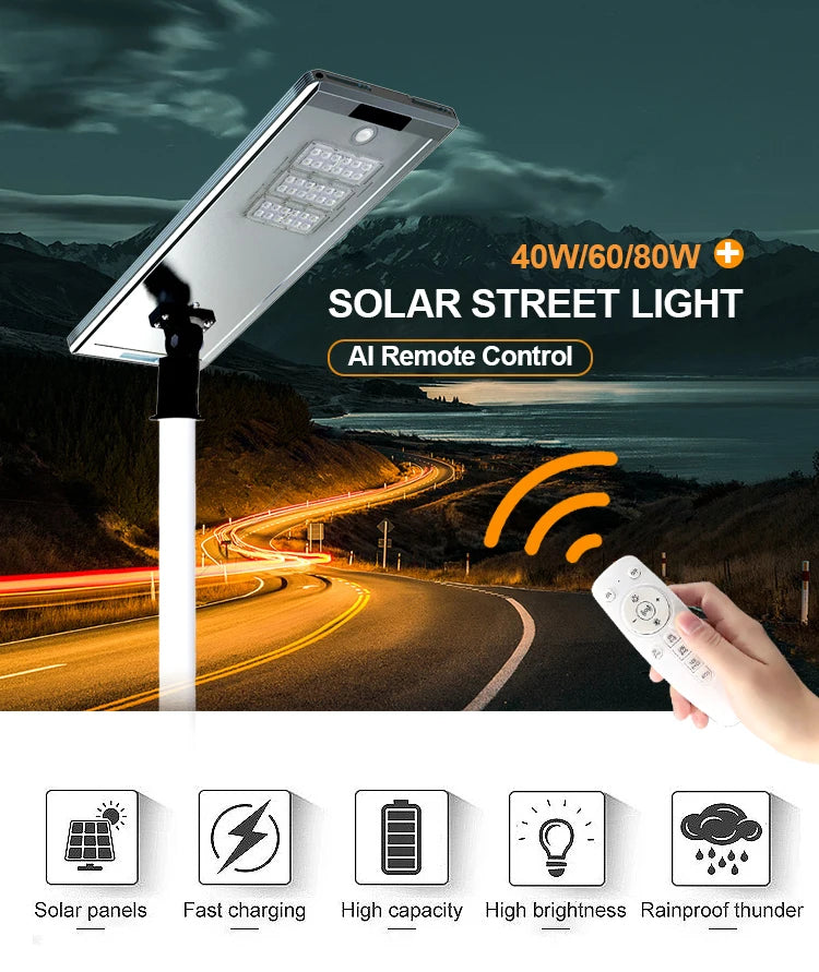 Outdoor High Conversion Energy Saving Aluminum Alloy Material Glass Solar Outdoor Street Lighting Street 40W Led İntegrated lamp